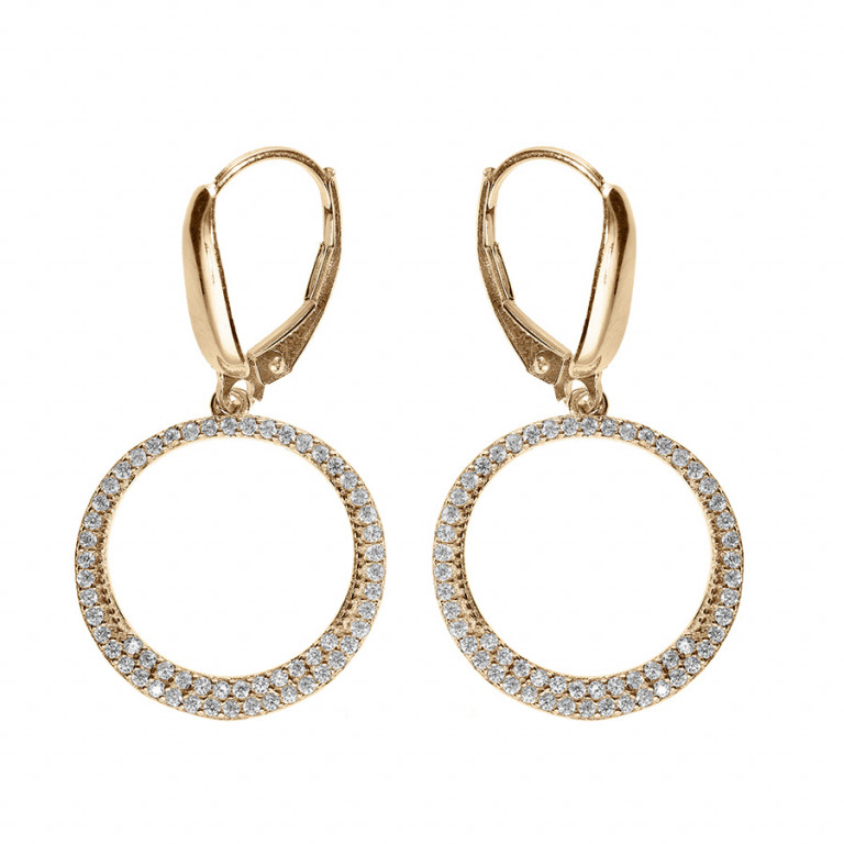 BOUCLES D'OREILLES DORMEUSE PLAQUE OR CERCLE EVIDÉ OXYDES BLANCS