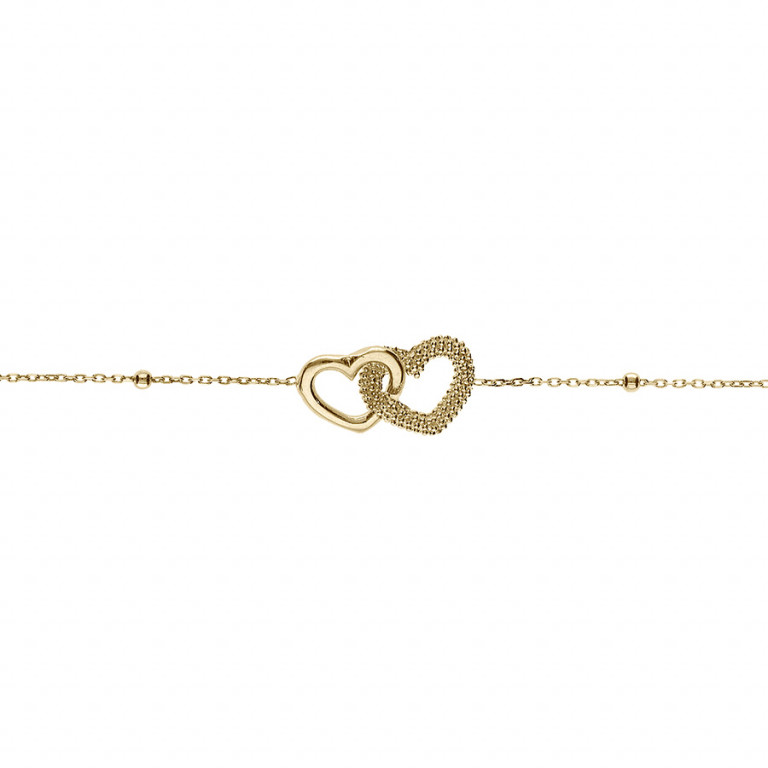 BRACELET PLAQUE OR CHAINE BOULES 2 COEURS ENTRELACÉS