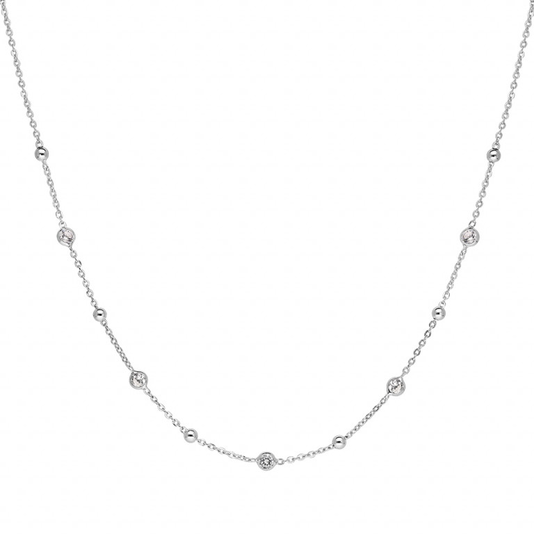 COLLIER ARGENT RHODIÉ 5 OXYDES BLANCS SERTIS ET BOULES