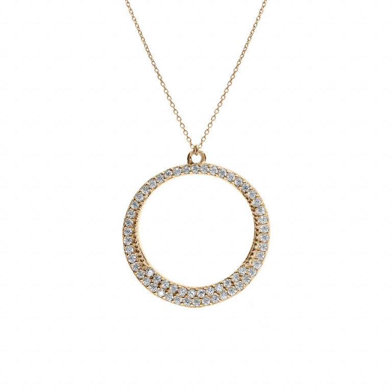 COLLIER PLAQUE OR PENDENTIF CERCLE EVIDÉ OXYDES BLANCS