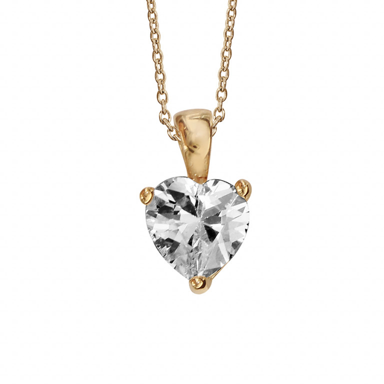 COLLIER PLAQUÉ OR PENDENTIF SOLITAIRE FORME COEUR OXYDE BLANC